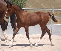 VALENCIA - *02 Dutch Warmblood filly by Zeoliet out of Noble Question. Valencia is an elegant red bay filly with a star. A supple and long strided mover with natural athletic ability. At the Silver Hill USDF Breed Show, Valencia earned 3rd place in the Fillies of 2002 class. She also earned the High Scoring Dutch Warmblood award for the entire show. Judges comments were, "Nice modern type with good shoulder and hip." | ||